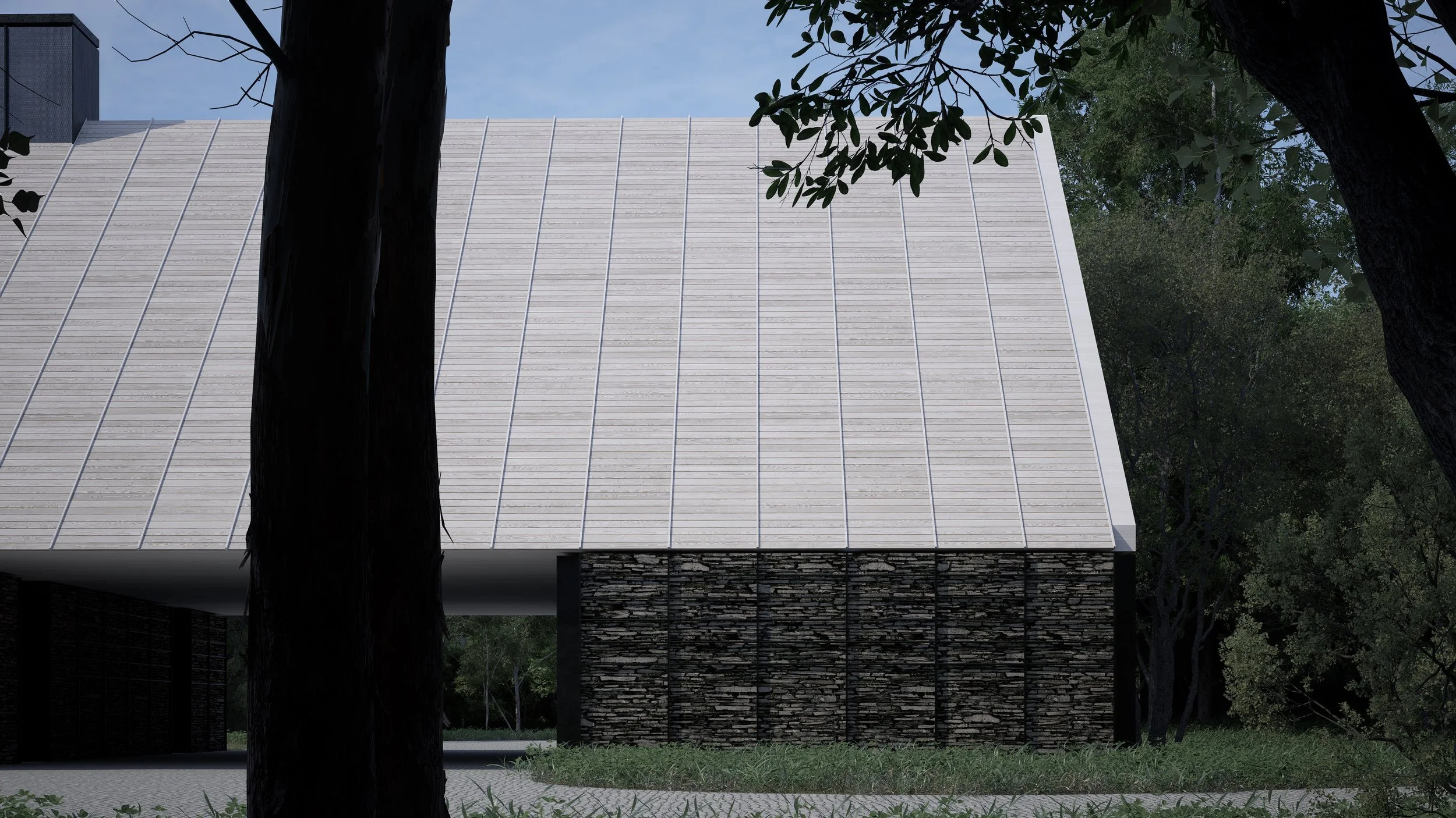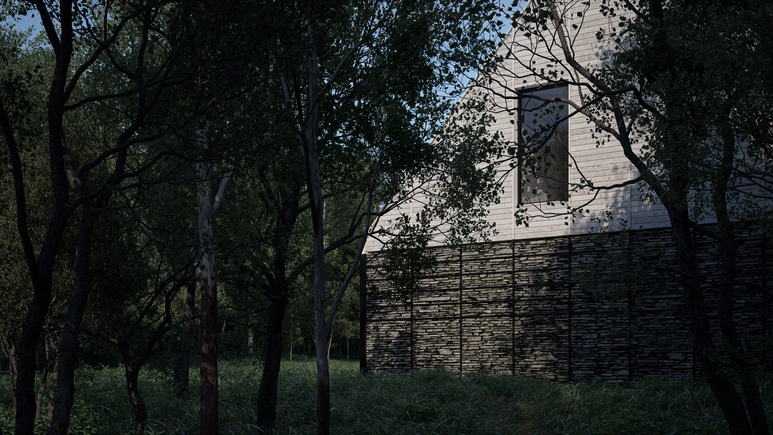 Description: Although contemporary in expression, this project seeks to honor the traditional building techniques, forms, and materials that have shaped New England since its earliest settlements. Chief among these inspirations is the dry stack stone wall — a defining feature of the region’s landscape.