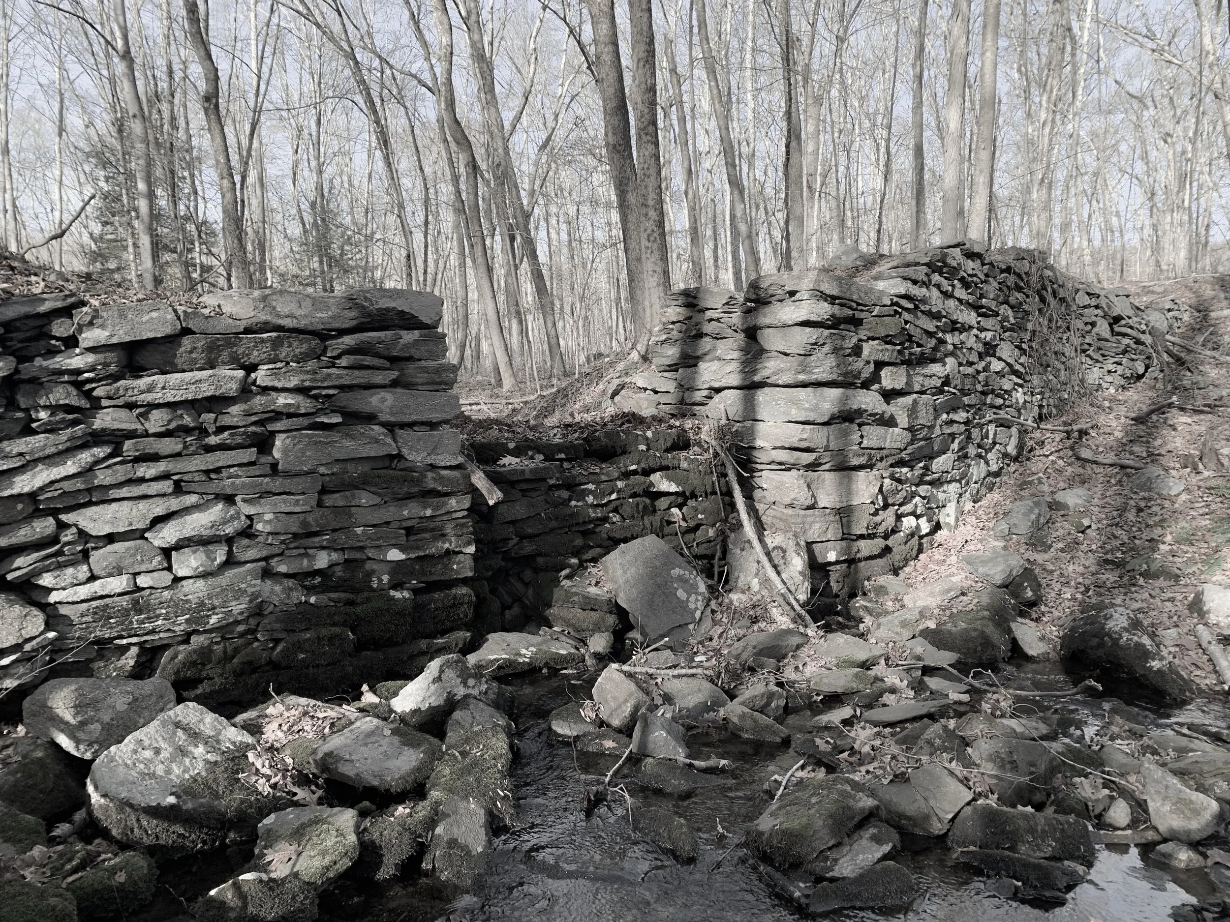 Traditional dry stack walls are inherently limited by gravity, rarely exceeding four or five feet in height. To build beyond this limit, we developed a simple system of steel plates and tension cables. Steel plates, placed every four feet, act as structural “bookends,” containing the stone, while horizontal cables bind the wall together, maintaining stability. This four-foot module becomes a guiding rhythm throughout the home, informing structure, proportion, and detail.